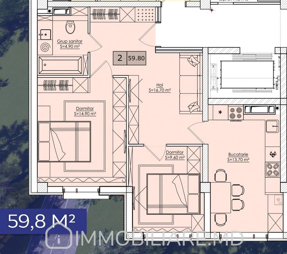 Suprafața locuinței:59,8 m²