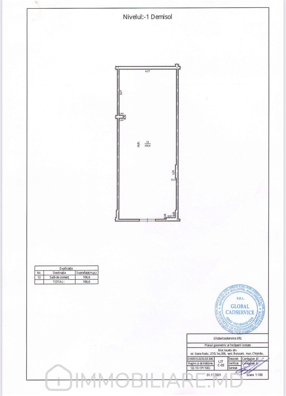 Vă propunem spre vînzare spațiu comercial în varianta albă amplasat în sect. Buiucani, str. Ioana Radu.